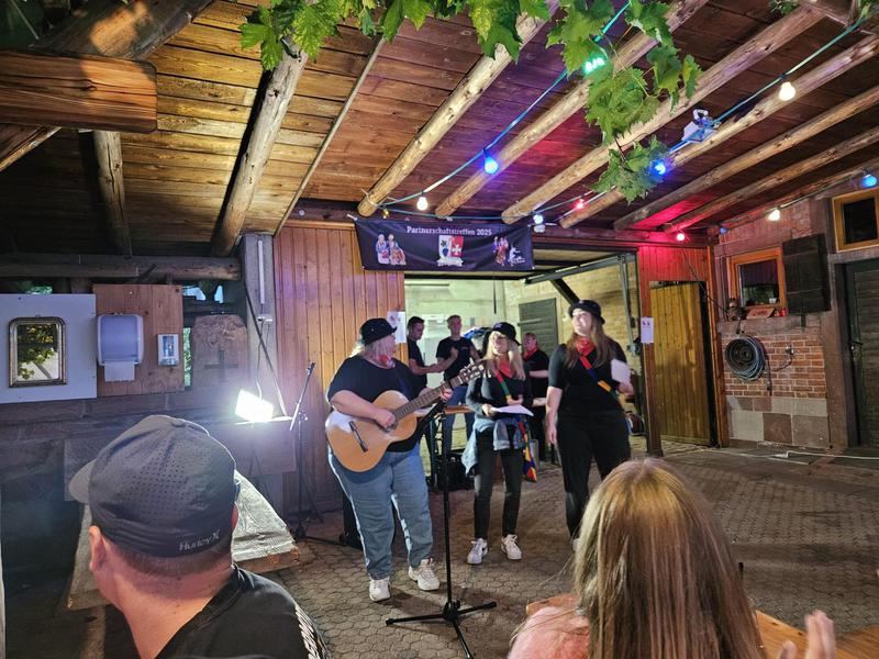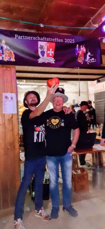 Beim ersten Partnerschaftsfest sorgten die Fessenbacher mit einem Partnerschafts-T-Shirt für Überraschung – dieses Mal setzten die Ebersweirer mit einem Partnerschaftshut samt Aufdruck „Es war die Sehnsucht, ä Herzenssach. Willkommen in Ebersbach“ noch einen drauf.