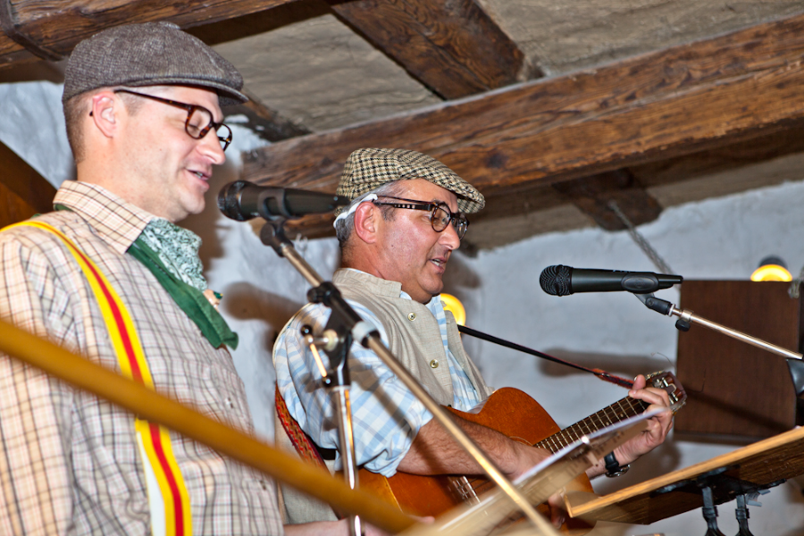 Beni und Uli Litterst eröffneten das närrische Programm. Die beiden Wanderer aus dem Rebland hatten wieder viel Lokalkolorit in ihrem Portfolio, angefangen bei den jungen Wilden der Narrenzunft, die auch ihren Spott abbekamen, oder dem Nikolaus, der sich als eingefleischter Borussia-Dortmund-Fan ein Lied vom FC Bayern München anhören musste. Und natürlich war auch ein Thema der »geklaute Rammersweierer Maibaum«, was der ebenfalls anwesende Zunftmeister Charly Busam mit Humor nahm. Er kündigte an: »Der Maibaum 2016 wird videoüberwacht!«