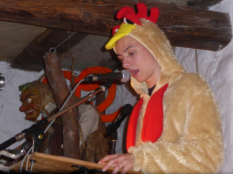 Als Moritz Litterst als lustiger »Guller« das Narrenvolk begrüßte, war allen klar, dass das Motto der Kampagne 2018 ein »tierisches Vergnügen« wird. Auf dem »verrückten Buurehof« passiert natürlich einiges. Passend dazu hatten sich die Ebersweierer Mädels rote »Hühner-Häubchen« auf gesetzt. Als letzter »Guller« von Fessenbach hatte Litterst so manche Stallgeschichte ausgegraben: den Fuchs von Ortenberg, der Schuhe klaut, die Baumschutzverordnung und den Dorfladen, der noch nicht so richtig in Fahrt kommt. Aber auch die grünen Radschutzstreifen sind dem Guller ein Dorn im Auge, wie auch der »Sidefade« (Seitenfaden), der mit seinen eckigen und langweiligen Kästen zum »Legoland« degradiert wurde.