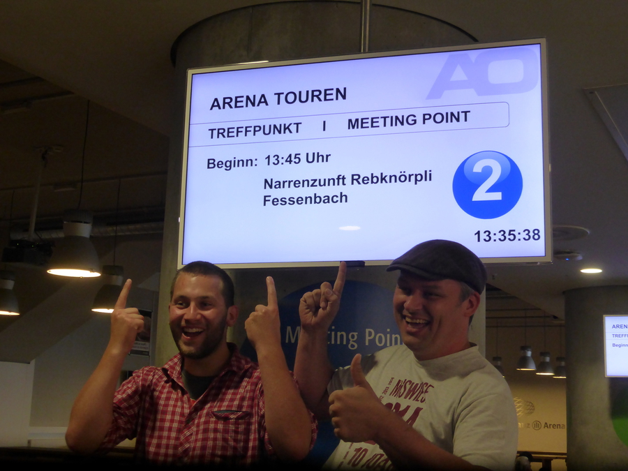 Nachdem die Narrenzunft „Rebknörpli“ in den letzten Jahren immer einen Tagesausflug gemacht hatte, wurde dieses Jahr wieder einmal ein 2-Tages Ausflug organisiert. Am Samstagmorgen starteten 46 gut gelaunte Fessenbacher Narren mit dem Bus nach München. Schon auf der Fahrt war die Stimmung grandios. In München stand zunächst eine Führung durch die Allianz Arena auf dem Programm. Beim Rundgang bekamen wir viele Informationen und wir bekamen auch das Innere dieses tollen Fussball Stadions zu sehen. Unter anderem ging es in den Pressekonferenzraum, in die Spielerkabinen, auf die Tribünen und in den VIP Bereich . Nur der „heilige“ Rasen durfte nicht betreten werden. Zum Abschluss der Führung konnten sich die Fessenbacher noch beim Torwandschießen messen. Sieger war Ralf Zapf mit 3 Treffern.