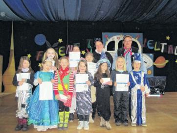 Die Krottestecher im Weltall hatten die Viertklässler mit ihrem Lehrer Stefan Heinrich im Bild festgehalten, und auch da wurden die Krottestecher eindrucksvoll dargestellt, sodass die Jury Marion Hugle, Fritz Hillenbrand und Adalbert Schwär es wirklich schwer hatte, die drei Preisträger zu ermitteln.