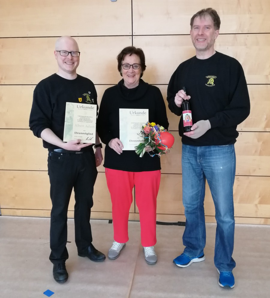 Bereits beim Jubiläumsobe am 1.April 2022 wurden Gertrud und Albert Adam zu Ehrenmitgliedern der Narrenzunft Rebknörpli Fessenbach ernannt. Da beide am Jubiläumsobe leider nicht dabei sein konnten, nutzten wir die Fasend 2023 um die Ehrenurkunde zu überreichen.