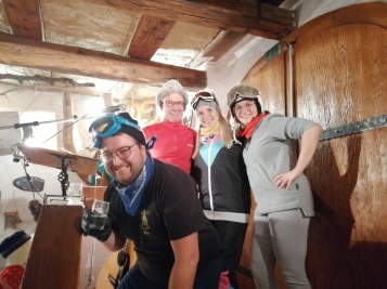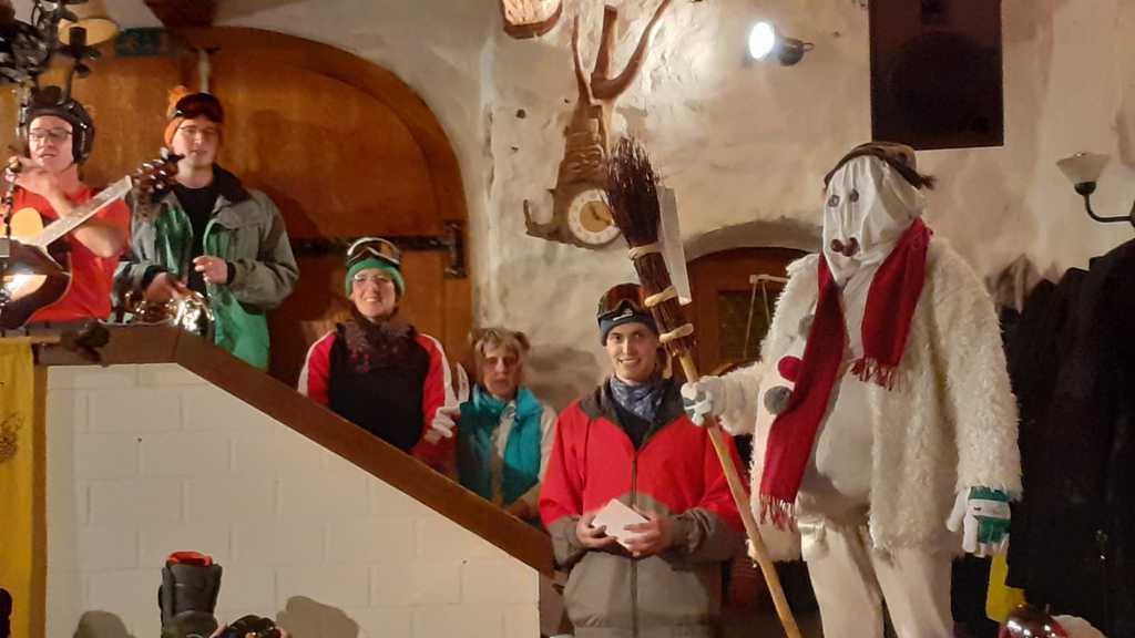 Das Programm startete mit den zwei Rebland Wanderern Beni und Uli Litterst. Wie gewohnt brachten sie wieder einige Geschichten an's Tagelicht. Danach lüftete der Zunftmeister das Geheimnis vom Fasend Motto 2023: Pistengaudi. Und schon kam das Schifoan-Trio (Lisa und Jana Hugle, Flo Zeil begleitet von Markus Litterst auf der Gitarre) auf die Bühne. Sie präsentierten das Lied "Skifoan" mit tollen Storys aus dem vergangenen Jahr. Ein alter Bekannter ist schon Moritz Litterst als Dr. Klingelberger. Er stellte sich als neuer Bergdoktor vor und berichtete u.a. von einer lauten Après Ski Party im Fessenbacher Rathaus. Fehlen durften zum Schluß nicht die Fessenbacher Bänklisänger mit "Ab auf die Piste".
