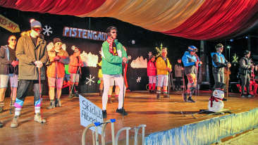 War der letzte Fessenbacher Zunftobe, vor Corona in 2020, noch „märchenhaft“ und Froschkönige sowie Prinzessinnen bevölkerten die Halle, so war nun Pistengaudi mit
