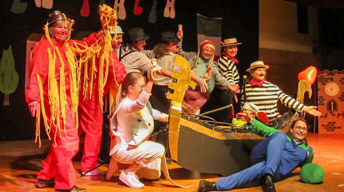 Danach wirbelten 18 Signorinas, die Knörpli-Girls, wirbelten unter der Leitung von Lotta Bürkle und Lara Uhlmann über die Bühne. Die Bänklisänger mit ihrem Maestro Markus Litterst hatten den Papst Gregor und die drei Tenöre (Jörg, Andy und Luis) dabei, deren Stimmen waren so gewaltig, dass selbst das Drama um einen Besen zu einer richtigen italienischen Opera ausartete.