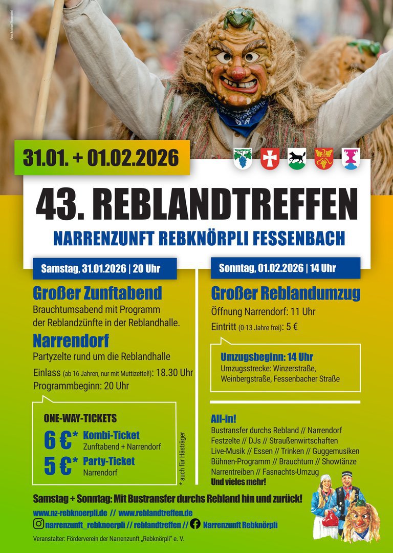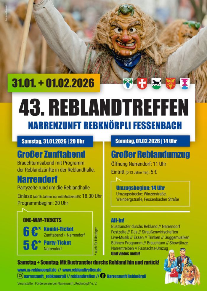 Die Reblandzunft ist ein Zusammenschluss der Fastnachtsvereine der Gemeinden Durbach, Ebersweier, Rammersweier, Zell-Weierbach und Fessenbach.