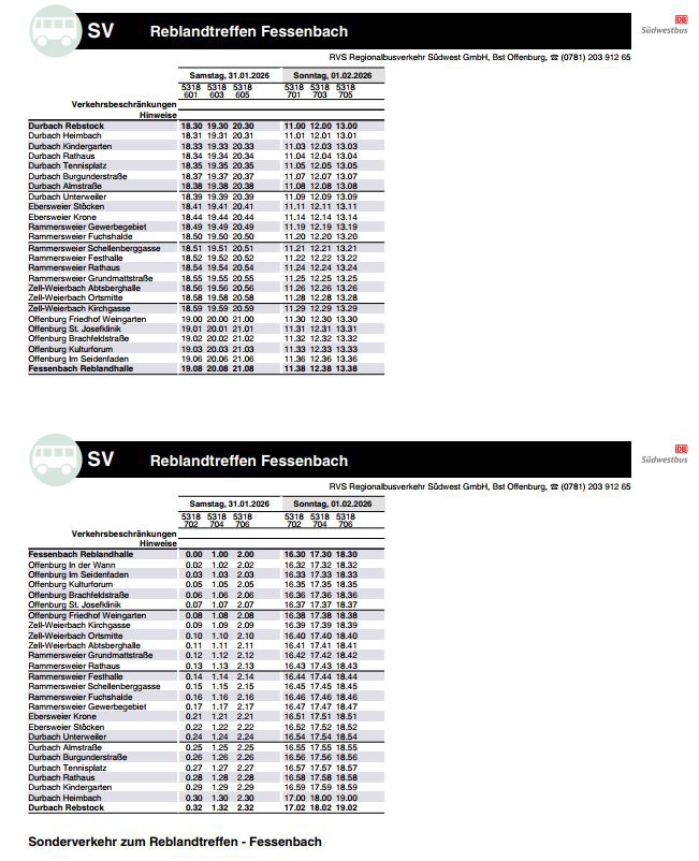 Busfahrplan (Kosten pro Fahrt 4,00 € - Hin & Rückfahrt 7,00 € - bis 10 Jahre frei):