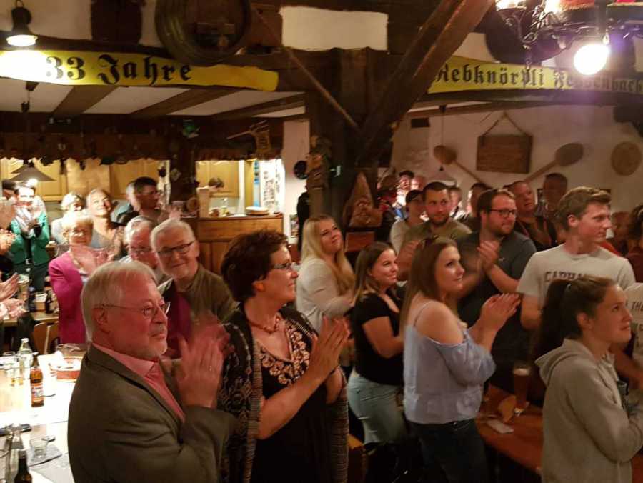 Die Mitglieder dankten Uli Litterst bei der Generalversammlung mit einem persönlichen Lied, stehenden Ovationen und langanhaltendem Applaus für seine Verdienste um die Narrenzunft Rebknörpli! (Pressebericht im OT hier!)